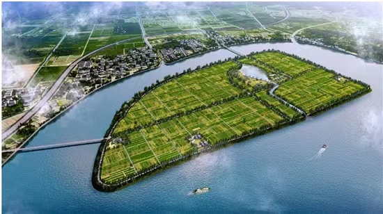 桐田沙位于瑞安市飞云江下游陶山镇境内,是飞云江江面中面积最大的江心洲,是自然积淤形成的滩涂地。桐田沙东西向长度约1400米,南北向宽度约600米,岛屿面积为1338亩。为了加强土地资源保护,切实提高土地利用率,去年6月,瑞安市陶山镇将该岛屿列为实施全域土地综合整治项目,按照全域规划、全域设计、全域整治的要求,对该片土地按生产、生活、生态空间进行全要素综合整治。市交发集团经营公司充分发挥自身行业优势,积极承接该项目的整治工作,用实际行动践行国企担当、履行社会责任。该项目涉及农田、公路桥梁、水利等3个部分,其中农田部分建设总规模75公顷(合1133亩),规划新增水田面积63公顷(合951亩);公路桥梁部分包括2座永久性桥梁,其中南线前村大桥长度341.5米,北线州渎大桥长度341米;水利部分包括防洪堤、水闸、内河护岸等工程。
