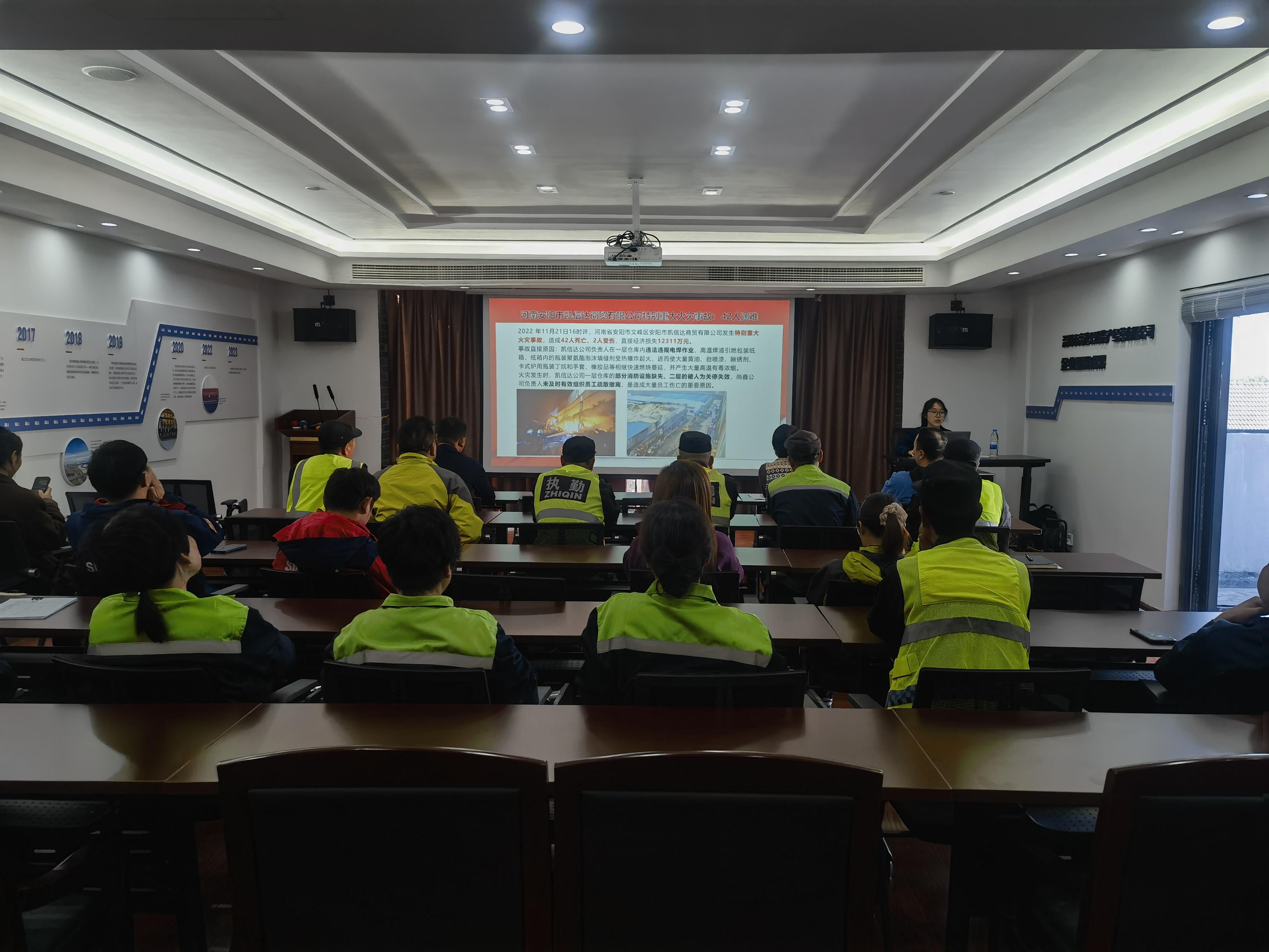 2023年11月22日下午,党群服务中心特邀瑞安市消防救援大队宣传办潘苏铭老师培训授课。潘老师结合消防安全制度以及近年来各类火灾案例,对参加人员进行警示教育。随后进行消防安全知识培训,就如何正确使用灭火器、遇到火灾如何报警、如何扑救初期火灾、安全逃生技能及注意事项等内容进行了详细讲解。