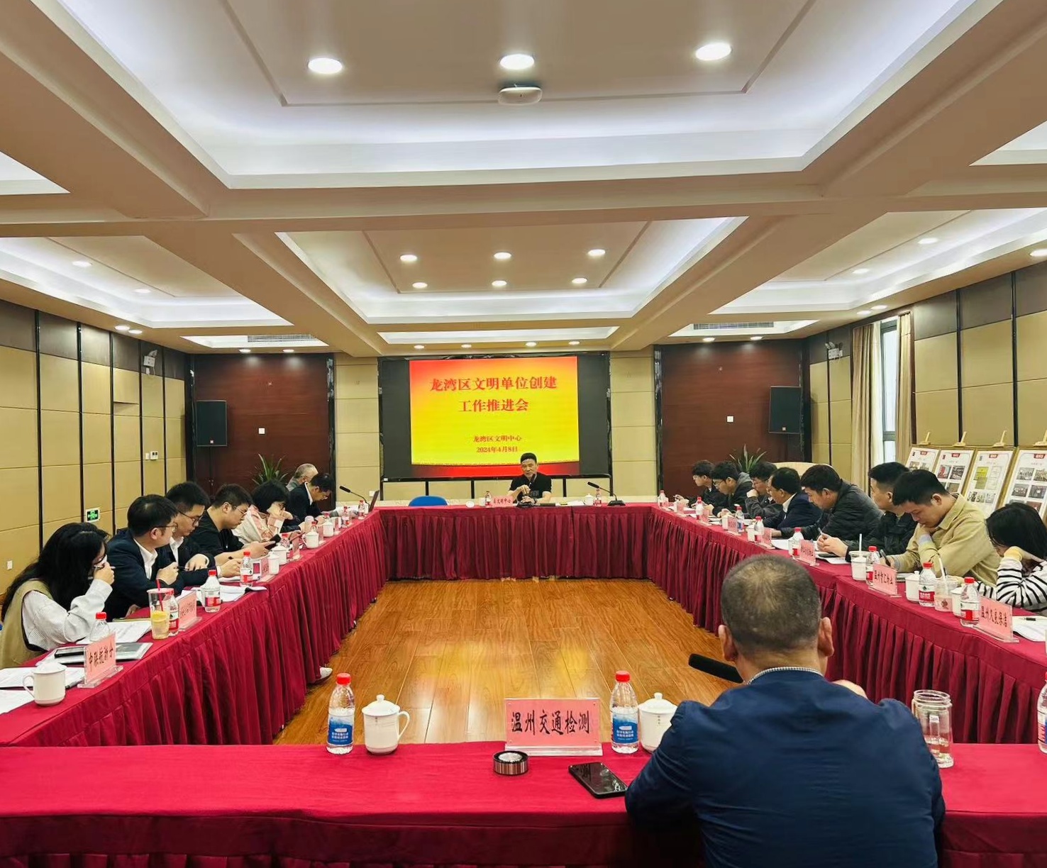 强城行动,文明先行。近日,龙湾区文明中心在温州市交通工程试验检测有限公司召开2024年全区文明单位创建工作推进会,列入申报第二十批市级文明单位培育的16家区级文明单位参会。