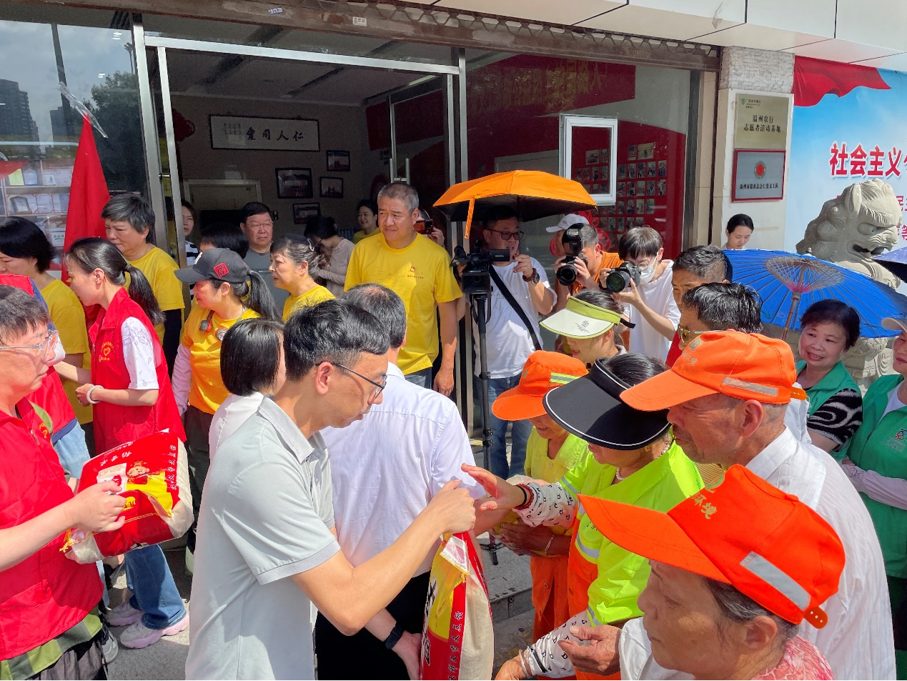 活动现场,华星公司与温州市慈善总会及相关单位代表齐聚一堂,共同见证了这一爱心盛举的启动,并为一线环卫工人送上大米等慰问品,致敬辛苦的高温工作者。