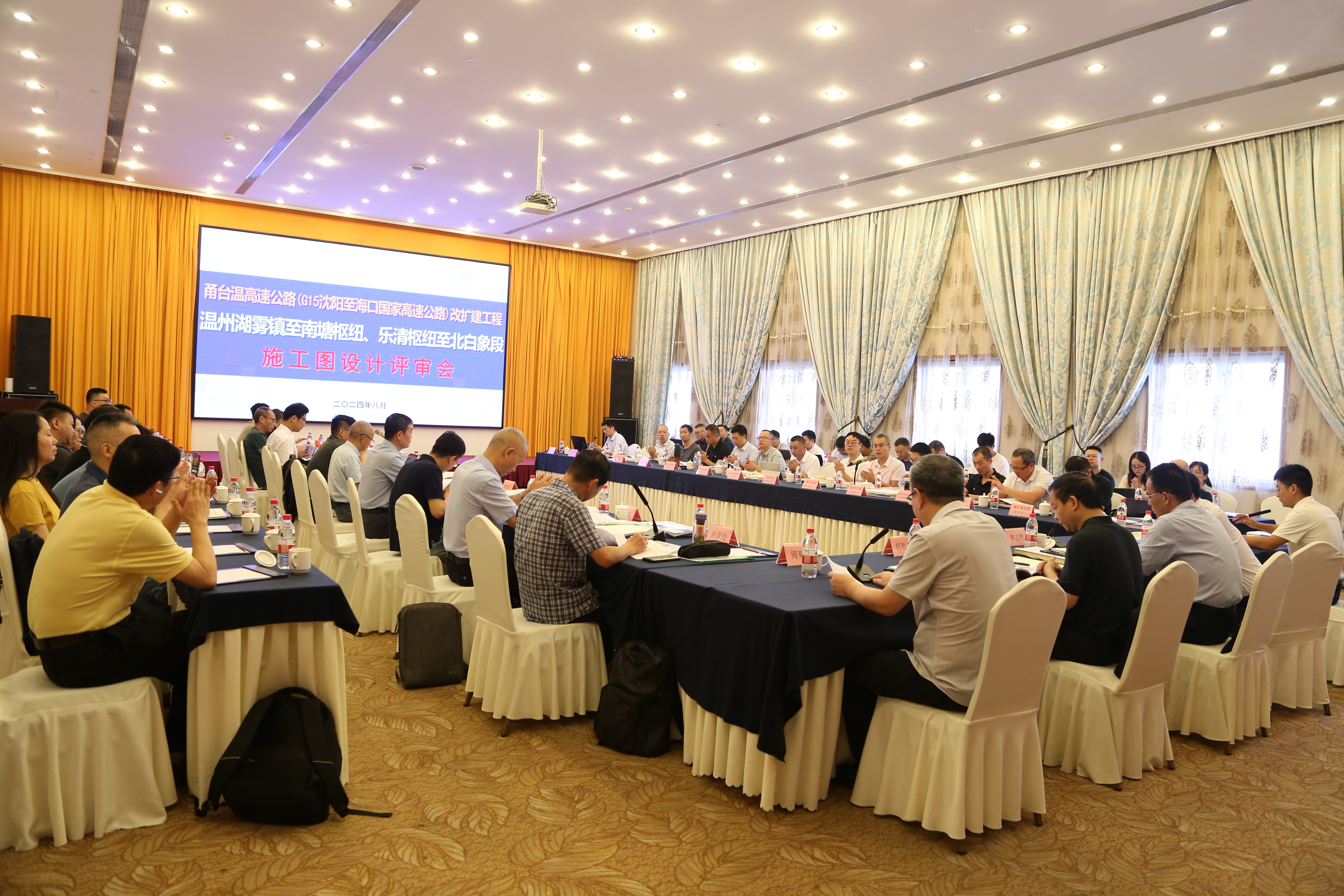 8月15-16日,甬台温高速公路改扩建工程温州湖雾镇至南塘枢纽、乐清枢纽至北白象段施工图设计审查会在杭州召开。省交通运输厅党组成员、副厅长级李志胜、二级调研员何胜春、市交通运输局总工程师陈亮,市交发集团总经理周列茅、副总经理潘济以及省市相关部门、专家参加会议。