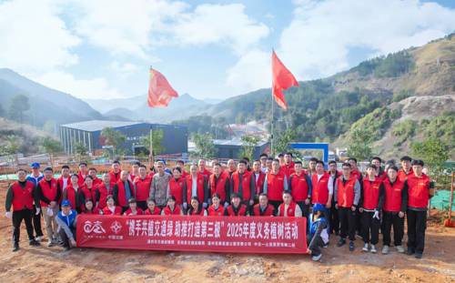 活动尾声,新栽的树苗与隧道口“绿水青山党旗红”标语相映成辉,勾勒出交通建设与生态保护的和谐画卷。