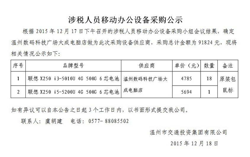 涉税人员移动办公设备采购公示