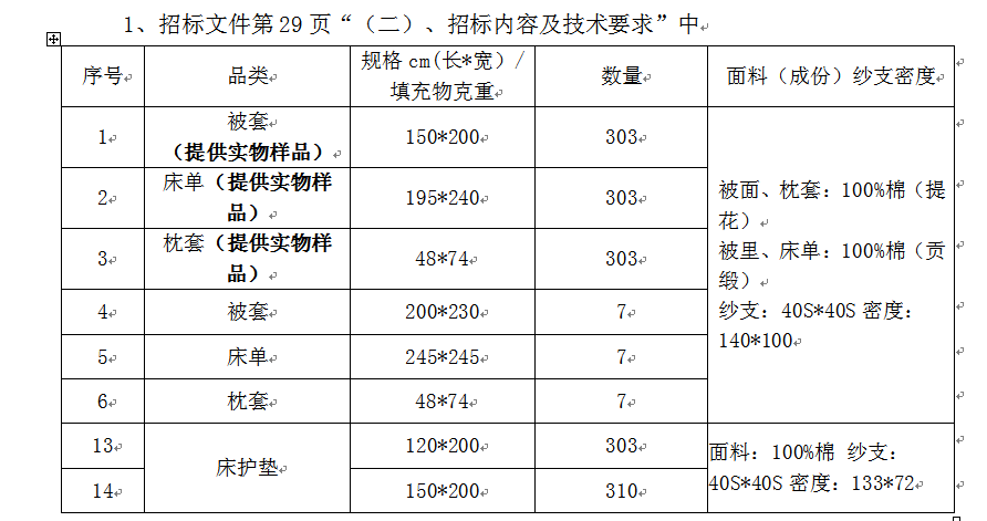 1.招标文件第29页“(二)、招标内容及技术要求”中