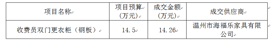 市交投集团绕城高速公路西南线有限公司收费员双门更衣柜(钢板)项目采购结果的公示