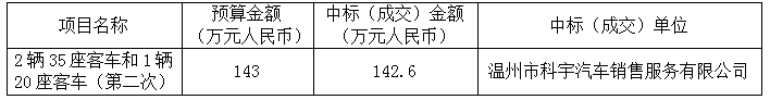 市交投集团绕西南公司2辆35座客车和1辆20座客车(第二次)项目 的中标(成交)公告
