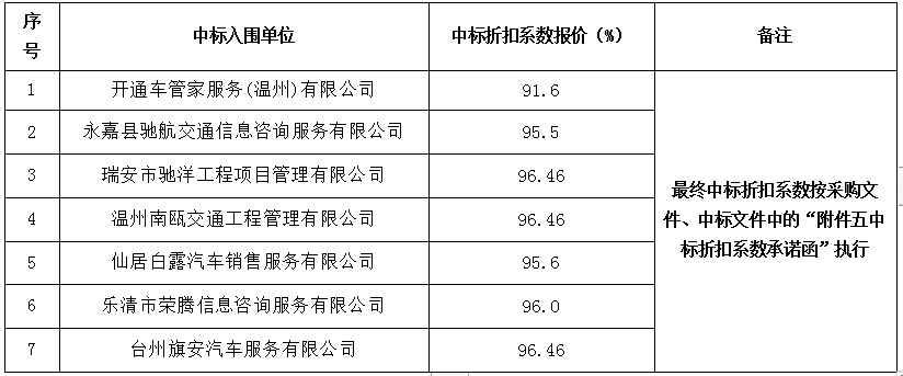 温州市交发集团所属温州筑诚交通工程监理有限公司关于工程监理车辆及驾驶服务租赁供应商入围项目(其他类)的采购结果公示