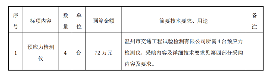 温州市交发集团所属温州市交通工程试验检测有限公司关于4台预应力检测仪项目(自主)的采购公告