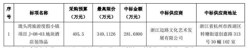 温州市交发集团所属温州金桥建设开发有限公司关于珑头湾旅游度假小镇项目J-08-03地块酒店装饰品项目的采购结果公示