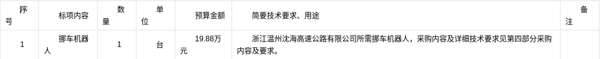 温州市交发集团所属浙江温州沈海高速公路有限公司关于挪车机器人项目(自主)的采购公告