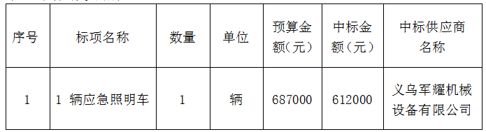 关于1 辆应急照明车(重)(自主)的采购结果公示