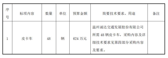 温州市交发集团所属温州诚达交通发展股份有限公司关于48辆皮卡车项目的征求意见公示