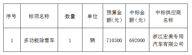 关于1 辆多功能除雪车(自主)的采购结果公示