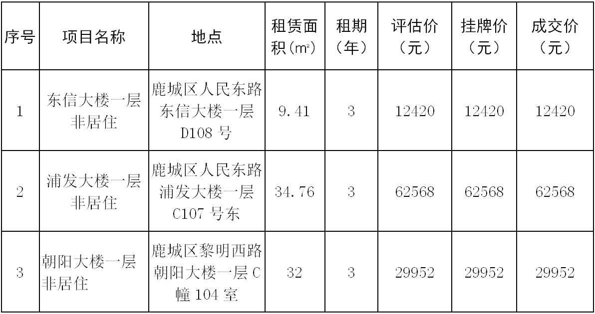 市交发集团房开公司东信大楼一层D108号、浦发大楼一层C107号东、朝阳大楼一层C幢104室资产出租结果公示