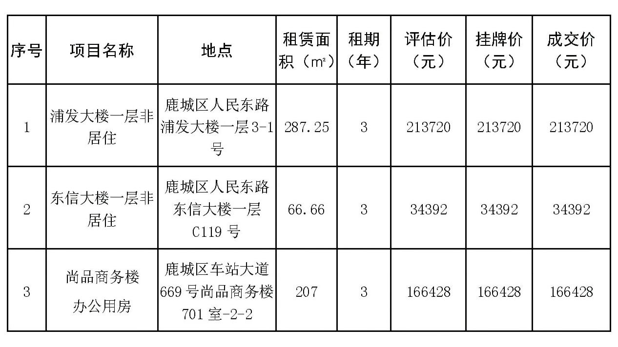 市交发集团房开公司浦发大楼一层3-1号、东信大楼一层C119号、尚品商务楼701室-2-2资产出租结果公示