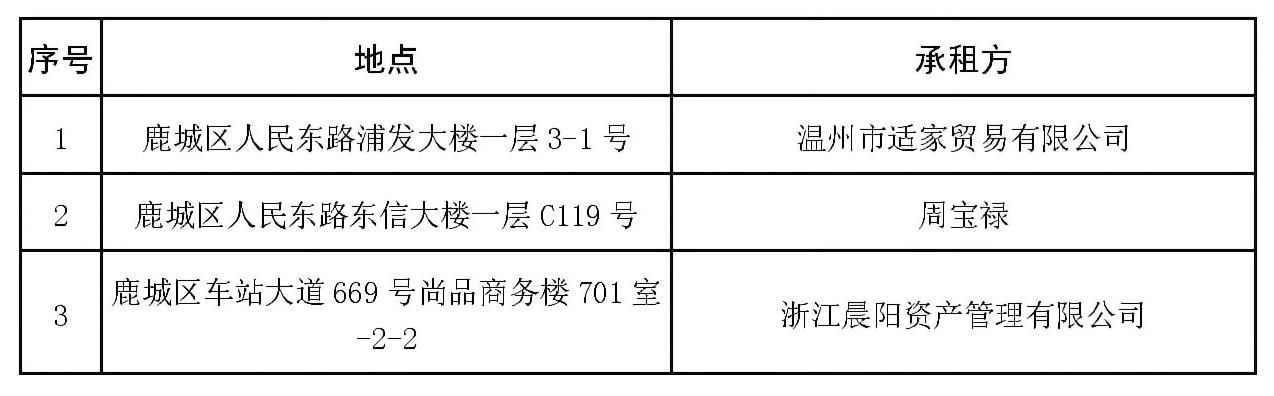 76net必赢官网下属温州房地产开发股份有限公司就所属浦发大楼一层3-1号、东信大楼一层C119号、尚品商务楼701室-2-2资产项目于2022年9月5日发布招租公告,现将招租结果公示如下: