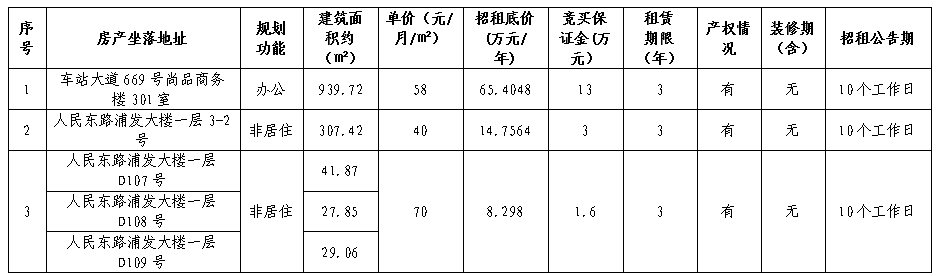 市交发集团温州房地产开发股份有限公司关于温州市鹿城区车站大道669号尚品商务楼301室、人民东路浦发大楼一层3-2号、人民东路浦发大楼一层D107号、人民东路浦发大楼一层D108号、人民东路浦发大楼一层D109号非居住用房三年租赁权交易公告