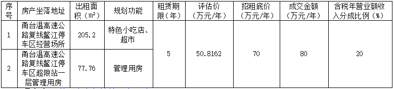 温州市交发集团经营公司关于甬台温高速公路复线鳌江停车区经营场所、鳌江停车区超限站一层管理用房2处房产五年租赁权转让结果公示