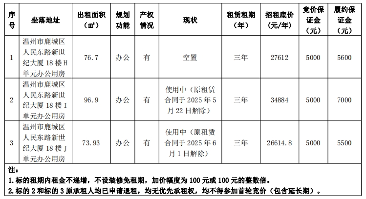 市交发集团所属温州市高速公路资产经营有限公司关于温州市鹿城区人民东路新世纪大厦18楼H、I、J等3个单元办公用房三年租赁权交易公告