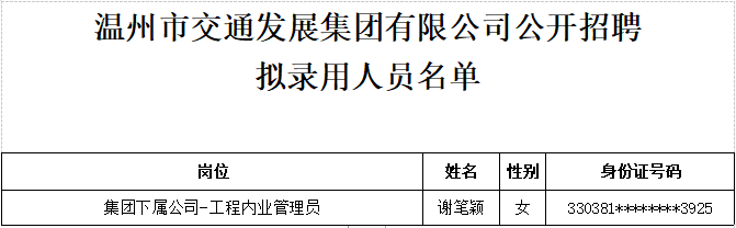 根据《76net必赢官网2023届高校毕业生校园招聘公告》要求,经过笔试、面试、政审、体检及体检复查且合格的谢笔颖等1名拟录用人员予以公示。公示期如发现有影响录用的情况或问题,请向集团纪检监察部门反映。