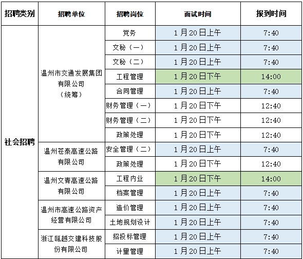 注:因参加面试人员较多,各岗位报到时间分为3个节点,请仔细辨认。