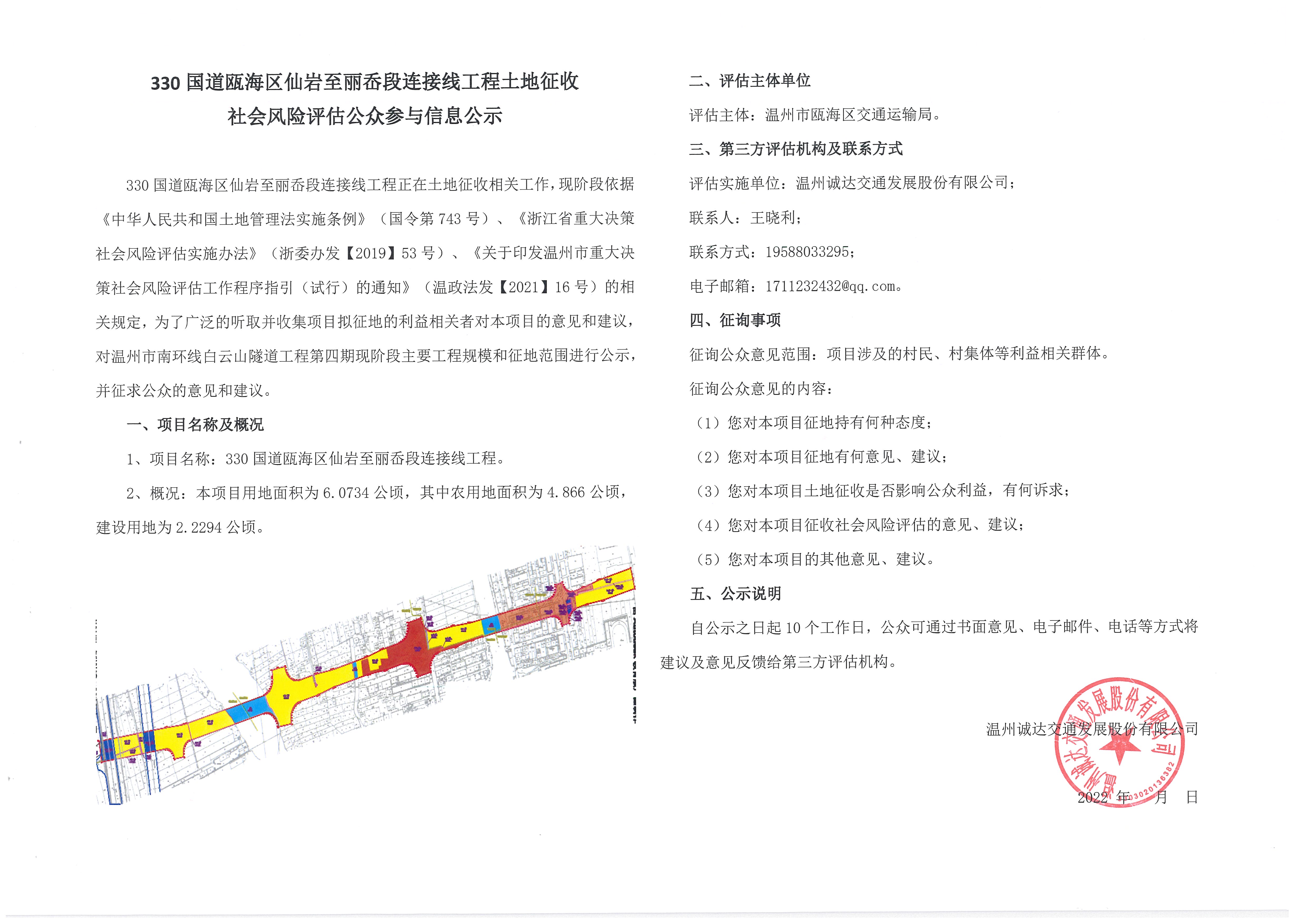 330国道瓯海区仙岩至丽岙段连接线工程土地征收社会风险评估公众参与信息公示
