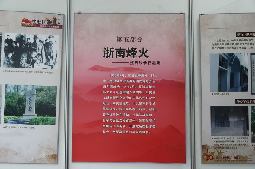 一幅图片就是历史的定格,背后的故事更是历史的强音,本次展览以图文并茂的形式,深入宣传中国人民抗日战争的伟大胜利和历史功绩、历史意义和抗战精神,特别是温州人民在党的领导下浴血奋战,奋勇前进,争取国家富强、人民幸福的光辉历程。翻开一张张老旧照片,有的虽然模糊不清,但透过它们,我们读懂了什么叫爱国;有的虽然血雨腥风,但透过它们,我们读懂了什么叫牺牲奉献;有的虽然泛着黄色,但透过它们,我们读懂了中华儿女对党和人民的无比忠诚。
