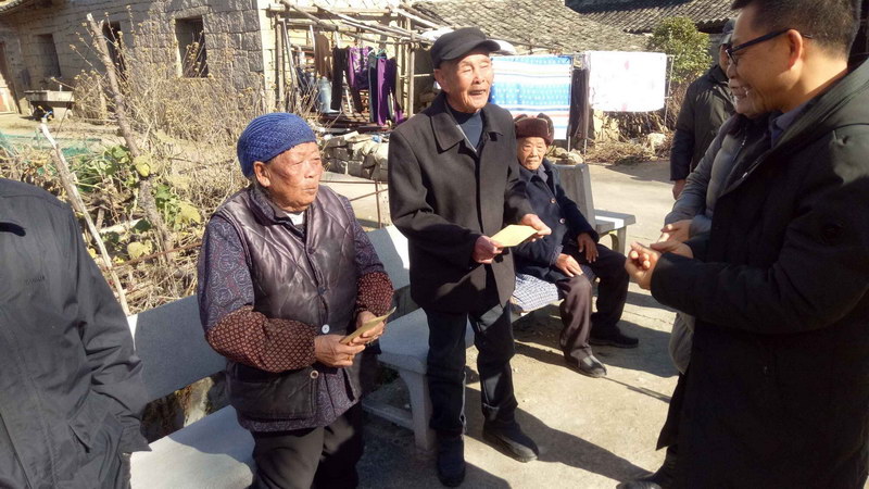 改革开放四十周年之际,又逢岁末寒冬。12月18日上午,诚达公司党总支沈剑华、工会谷勇带领部分单位职工前往永嘉县鹤盛镇罗川村开展高龄党员慰问活动。