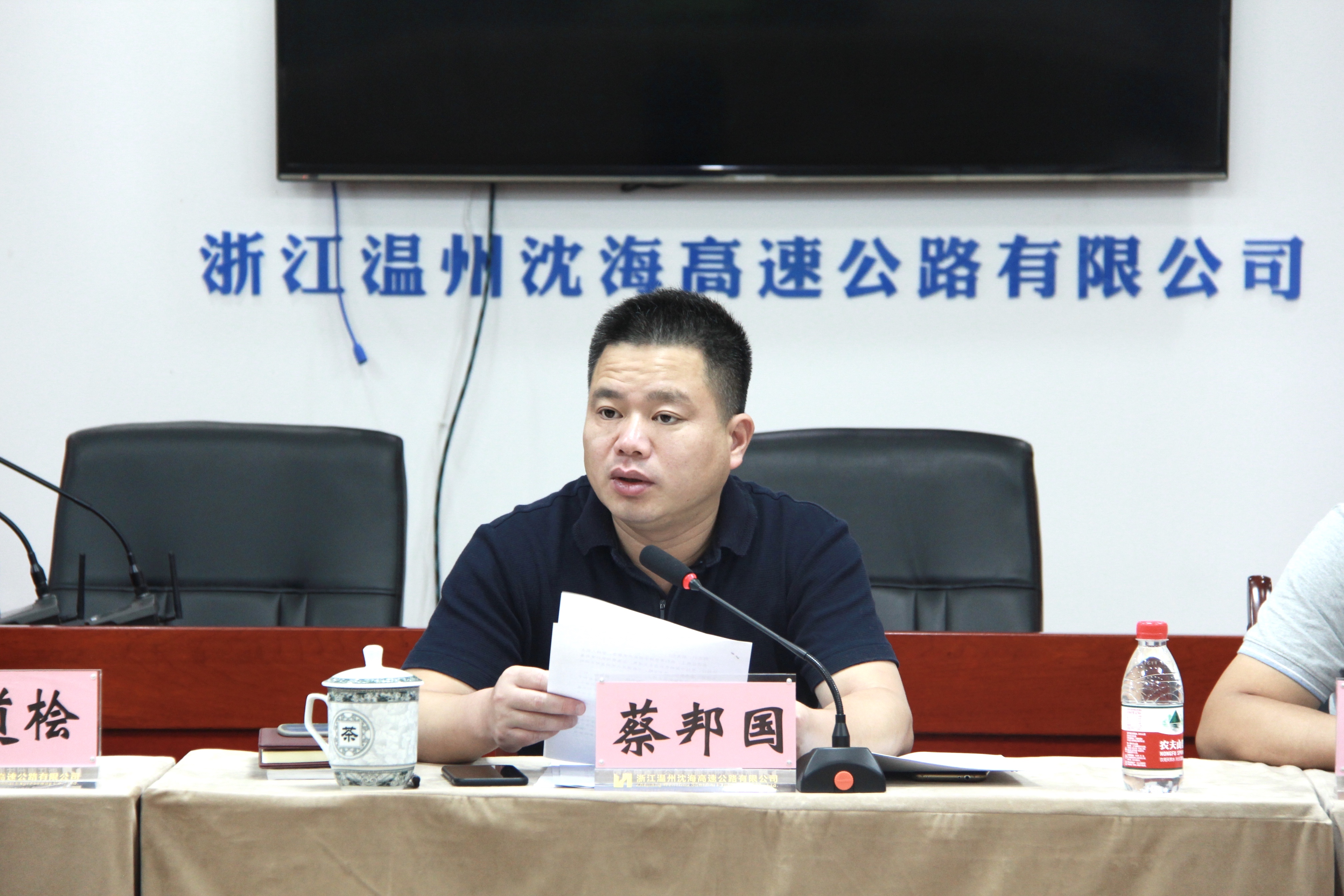会上,全体党员重温了入党誓词。会议传达了习近平总书记在庆祝中华人民共和国成立70周年大会上的讲话及市委书记陈伟俊在温州市“不忘初心、牢记使命”主题教育专题党课上的讲话精神。随后,蔡邦国结合学习精神报告个人学习心得,结合工作实际,深刻阐述了沈海公司全体党员干部的初心和使命,并要求全员再接再厉做好通车前的扫尾工作,时刻牢记使命、永远奋斗,以更加坚定有力的行动,为温州市打造全国性综合交通枢纽城市贡献自己的智慧与力量。