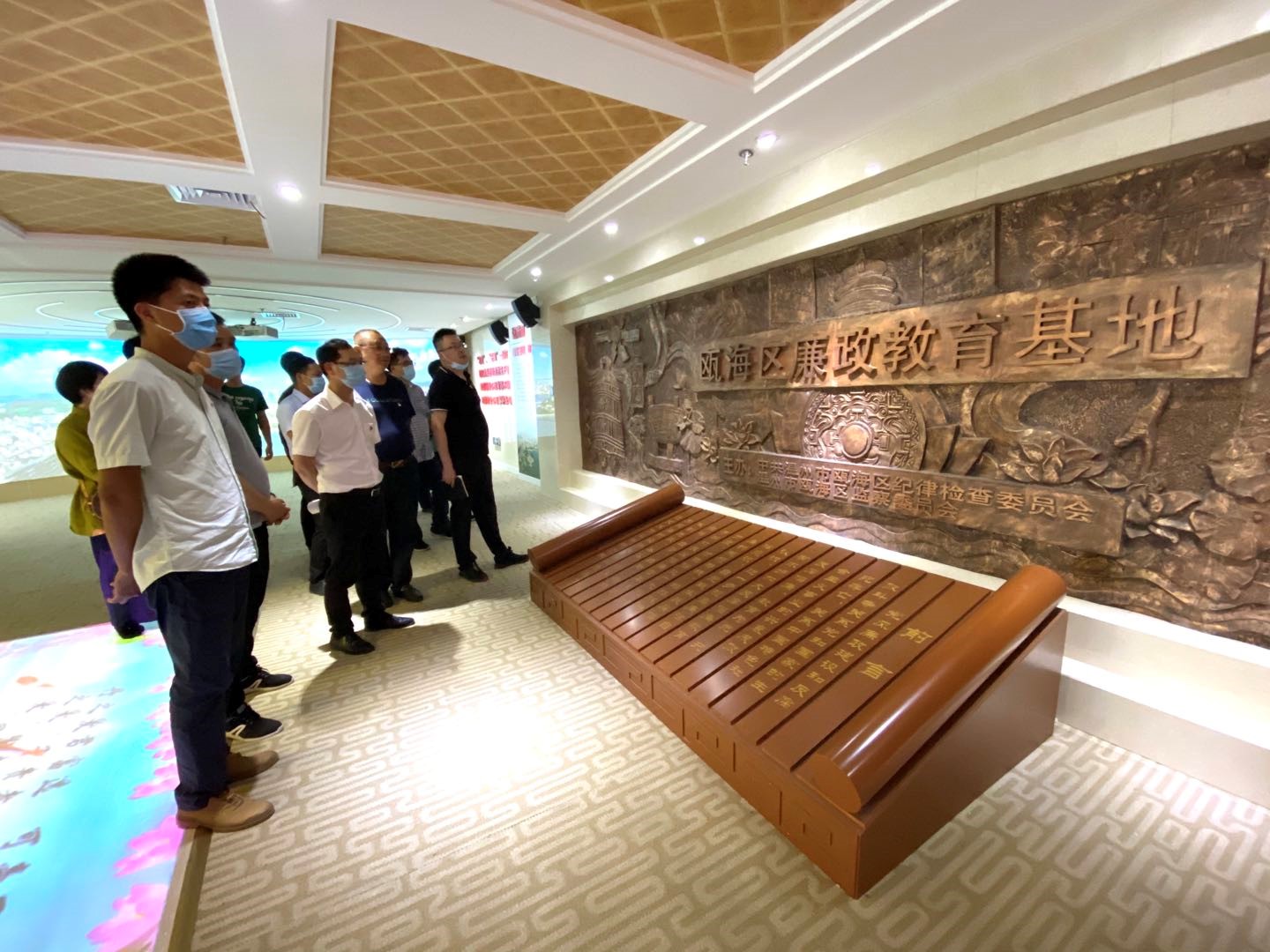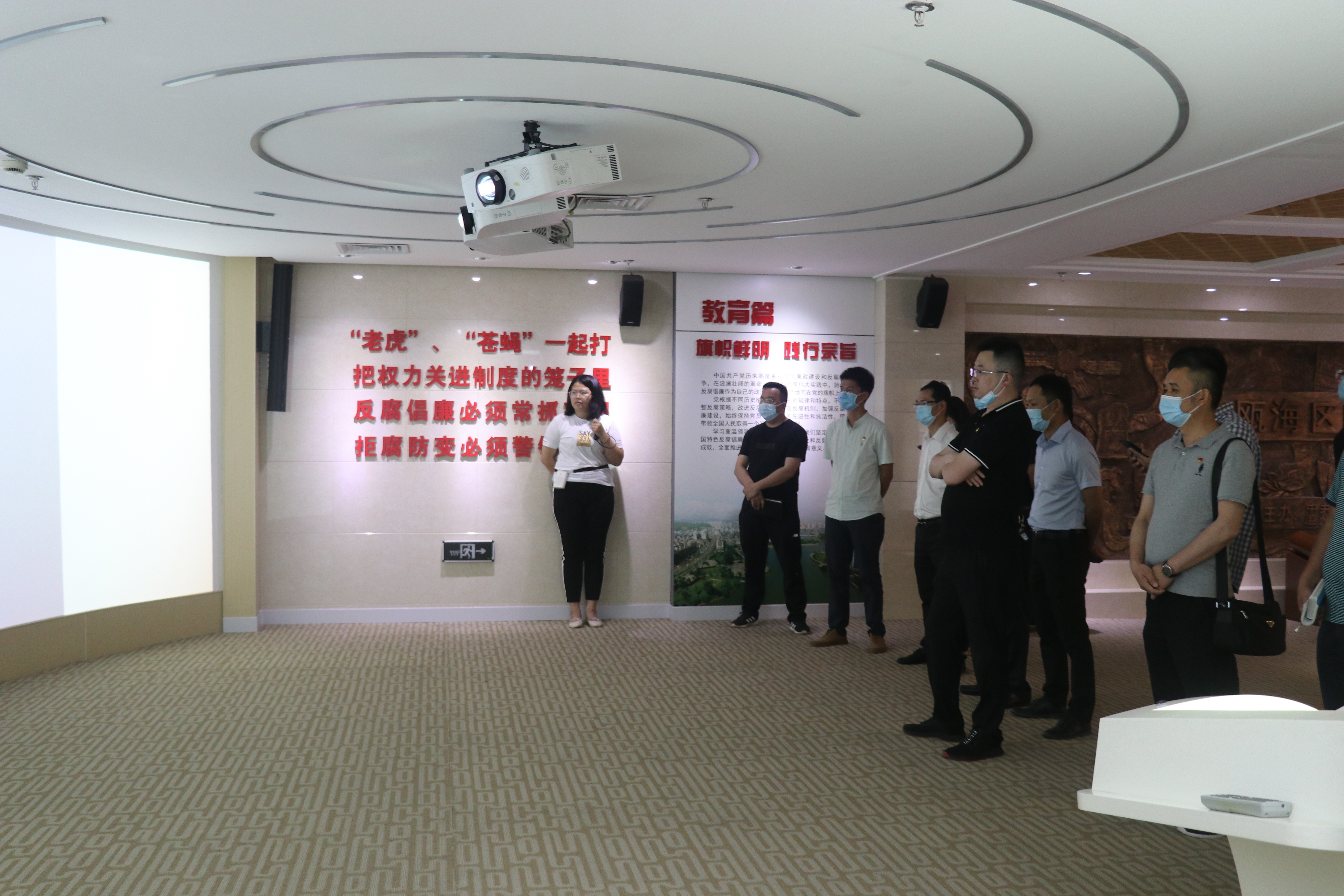 瓯海廉政教育基地通过“惩治篇”和“正气篇”两部分充分展示了廉政教育核心。党员干部首先从惩治篇内容贪腐恶果、悔之晚矣、犯罪根源开始学习;接着从正气篇廉政先锋、全面从严治党、清廉瓯海进行思想的洗礼。最后召开瓯江北口大桥联合党总支月度例会,土家二标王博文带领学习新时代温州人精神,各支部汇报5月份“三进六必谈”开展实施情况,并针对工程推进过程中需协调的问题进行讨论。