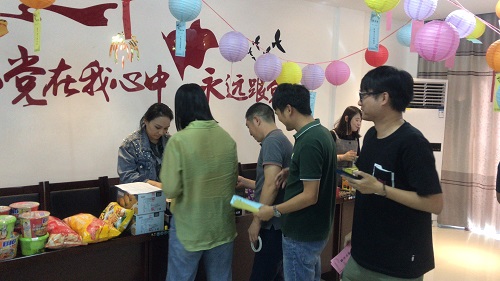 活动现场挂满了颜色各异的灯笼。每个灯笼上贴满了各种灯谜,每位员工答对2道即可兑换一份小礼品,大家或三五成群、高声辩论、或独自斟酌、排队等待谜底的揭晓,现场热闹异常,