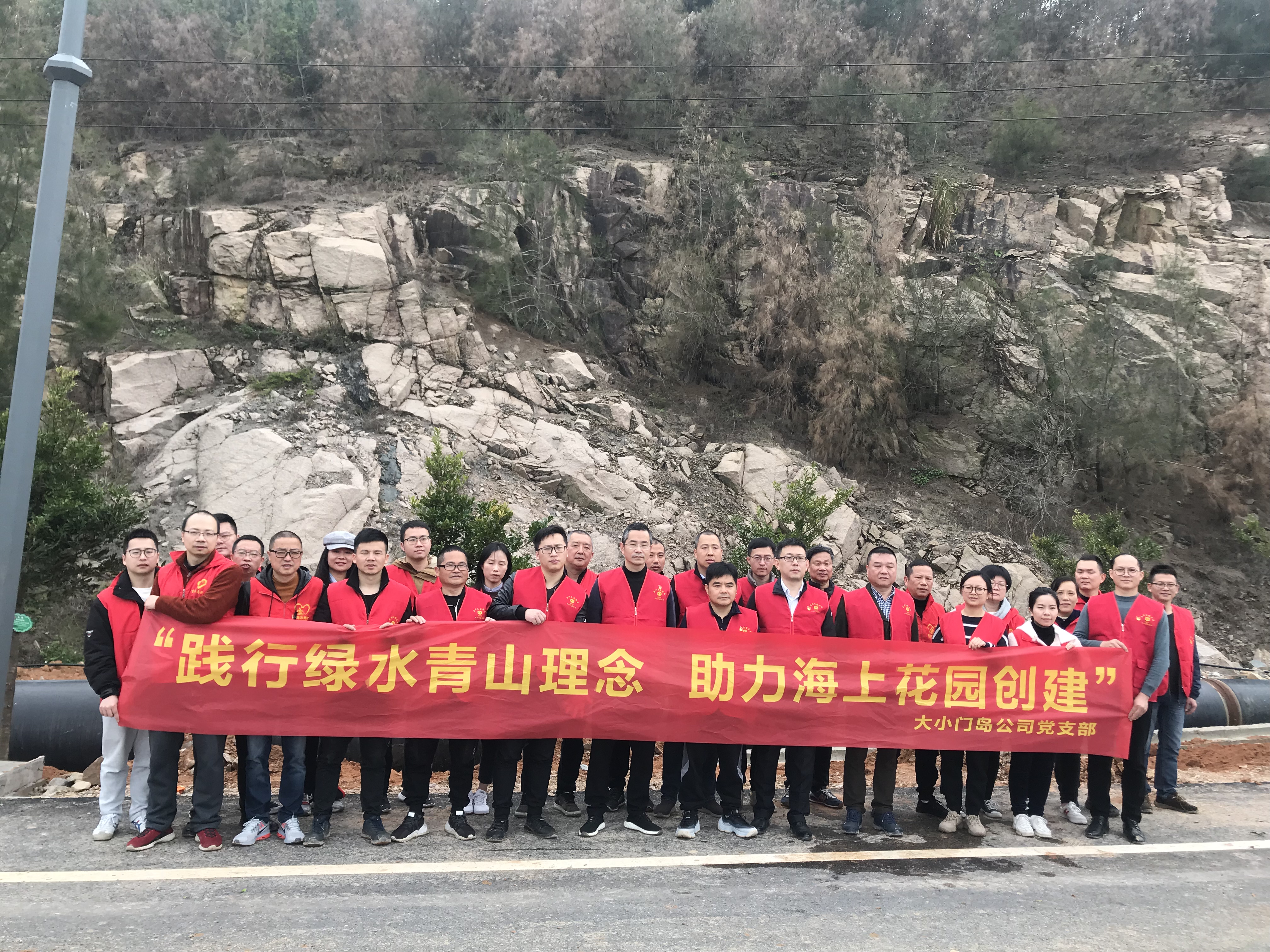 大小门岛党支部开展“践行绿水青山理念 助力海上花园创建”3月主题党日义务植树活动