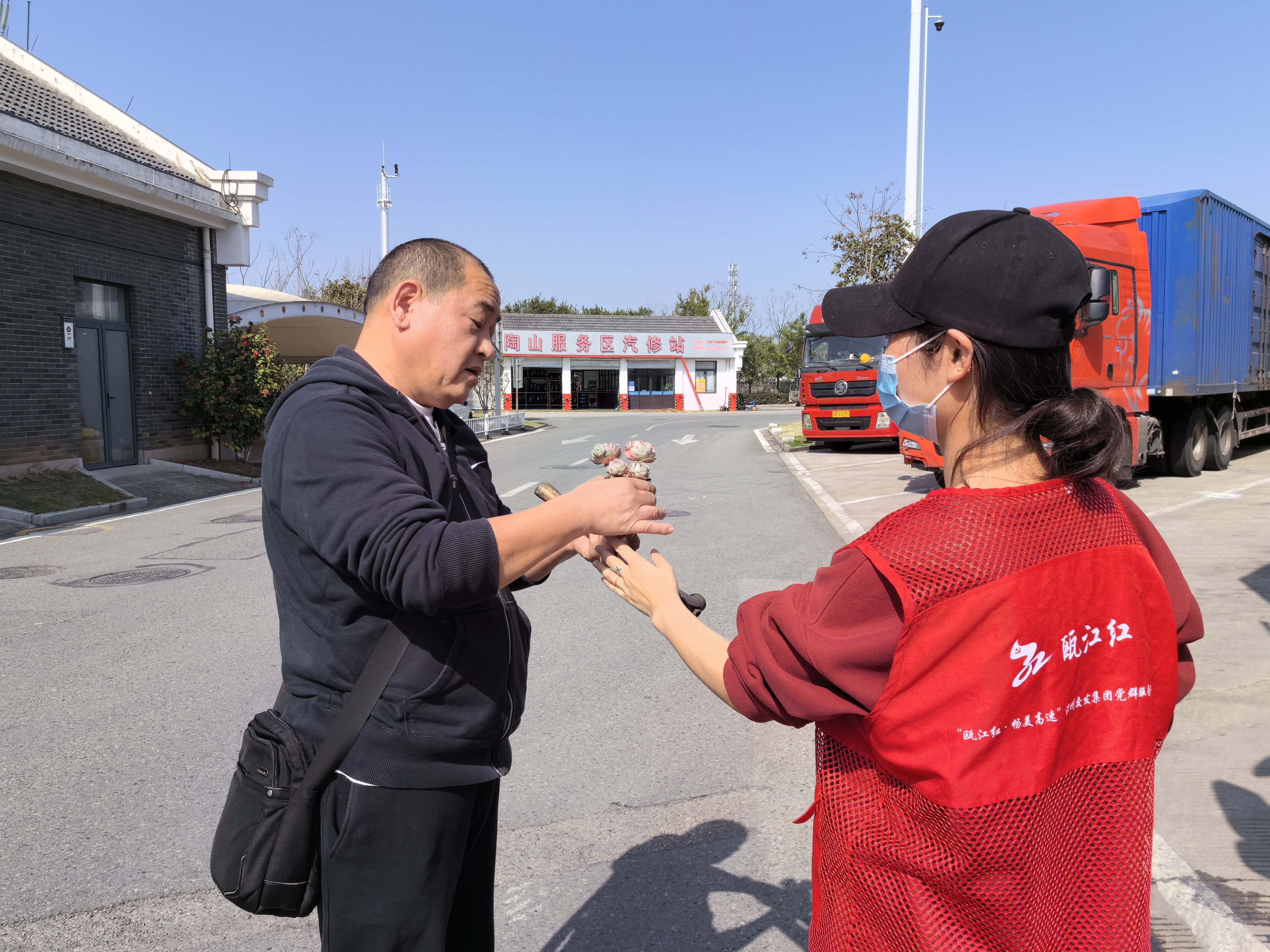 在服务区广场,志愿者准备了花盆和多肉,向过往的司乘人员普及“如何种植多肉植物”“种植多肉植物的好处”和“绿色植物日常养护”等知识,吸引感兴趣的司乘人员挑选自己喜欢的多肉,手持种植工具现场栽种。一盆盆多肉柔嫩可爱,绽放着活力,在大家的笑颜中期待着与“主人”的见面。