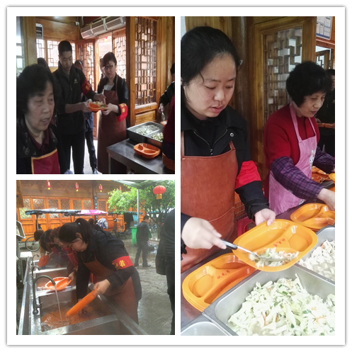 大清早,志愿者们便来到了状元亭,在状元亭义工们的指导下,开始忙碌起来,有的准备午餐,有的打扫卫生,有的整理餐桌,各项准备工作有条不紊进行着。到了午餐时间,排队领取中餐的人数逐渐增多,看着用餐的群众吃着热腾腾的饭菜,满脸洋溢着幸福的表情,志愿者们倍感欣慰。用餐结束后,志愿者们打扫好卫生,洗好餐具并进行消毒,圆满完成了一天的志愿者服务工作。