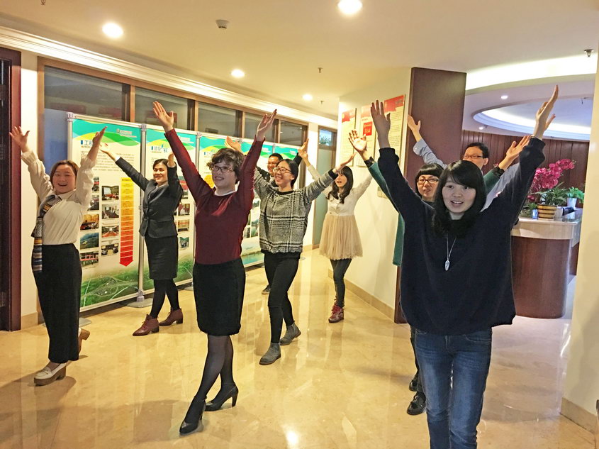 为提高广大职工身体素质和身心健康,引导职工树立“快乐工作,健康生活”的理念,以强健的体魄、旺盛的精力投入到工作中,从4月份起,瑞文公司全局人员正式开展了“工间操”健身活动,在不影响工作的前提下,每天上午10时、下午16时,熟悉的第八套广播体操的音乐都会准时响起,全体职工都会换好平底鞋,穿着舒适走出办公室,在走廊排好队,跟着音乐进行10分钟左右的工间操活动。