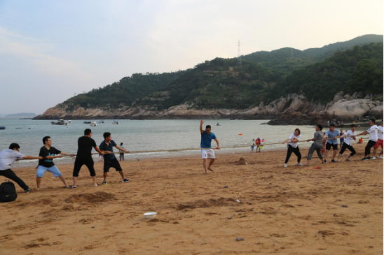 座谈参观之后,为了让两家公司的职工更好更快的相互认识,由两家公司团支部组织了沙滩素质拓展活动。在观音礁的沙滩上拔河、烧烤,这些活动迅速拉近了团员青年之间的距离,增强了团组织的凝聚力和向心力,伴着夕阳的余晖,青年们的欢笑声,海浪声,和谐得交织在一起,为活动画上完美句号。