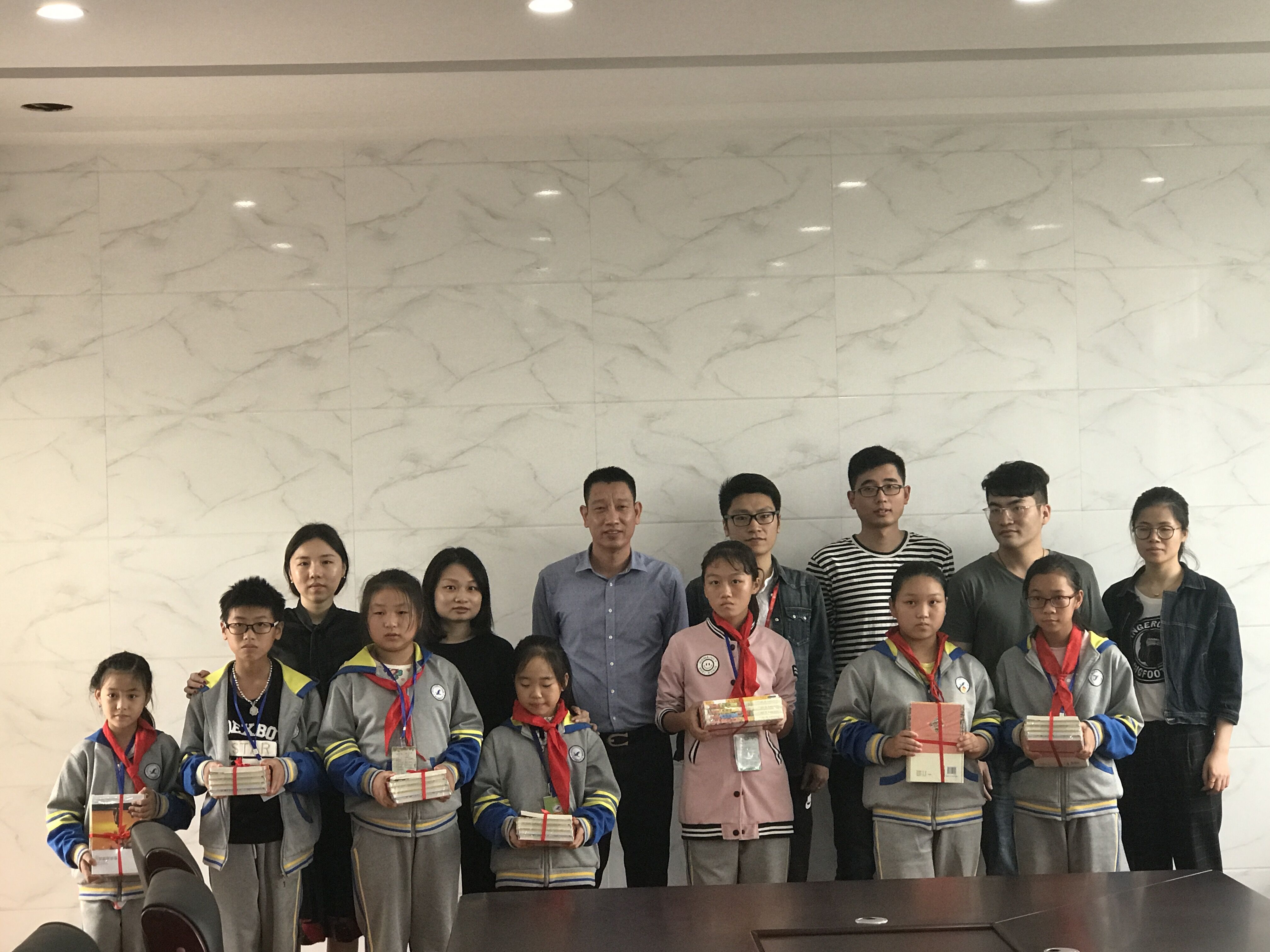 集团团委代表与金乡四小、大渔小学的多名学生进行了深入的沟通,对孩子们的近况进行了解,询问了他们生活之所需、学业之所困、心理之所愿、理想之所在。他们当中的好几位已从小学升至初中,部分学生家庭贫困情况仍然十分棘手。比如来自大渔镇学校的陈立柱,父亲已逝,母亲常年眼病无法治愈,家里唯一的劳动力是一个双腿患疾的爷爷,平时做点农活维持家用。年幼的孩子并不知道家庭的贫困情况对他意味着什么,他们天真的眼神让我们这些“大哥哥大姐姐”更多了一份怜爱和辛酸。