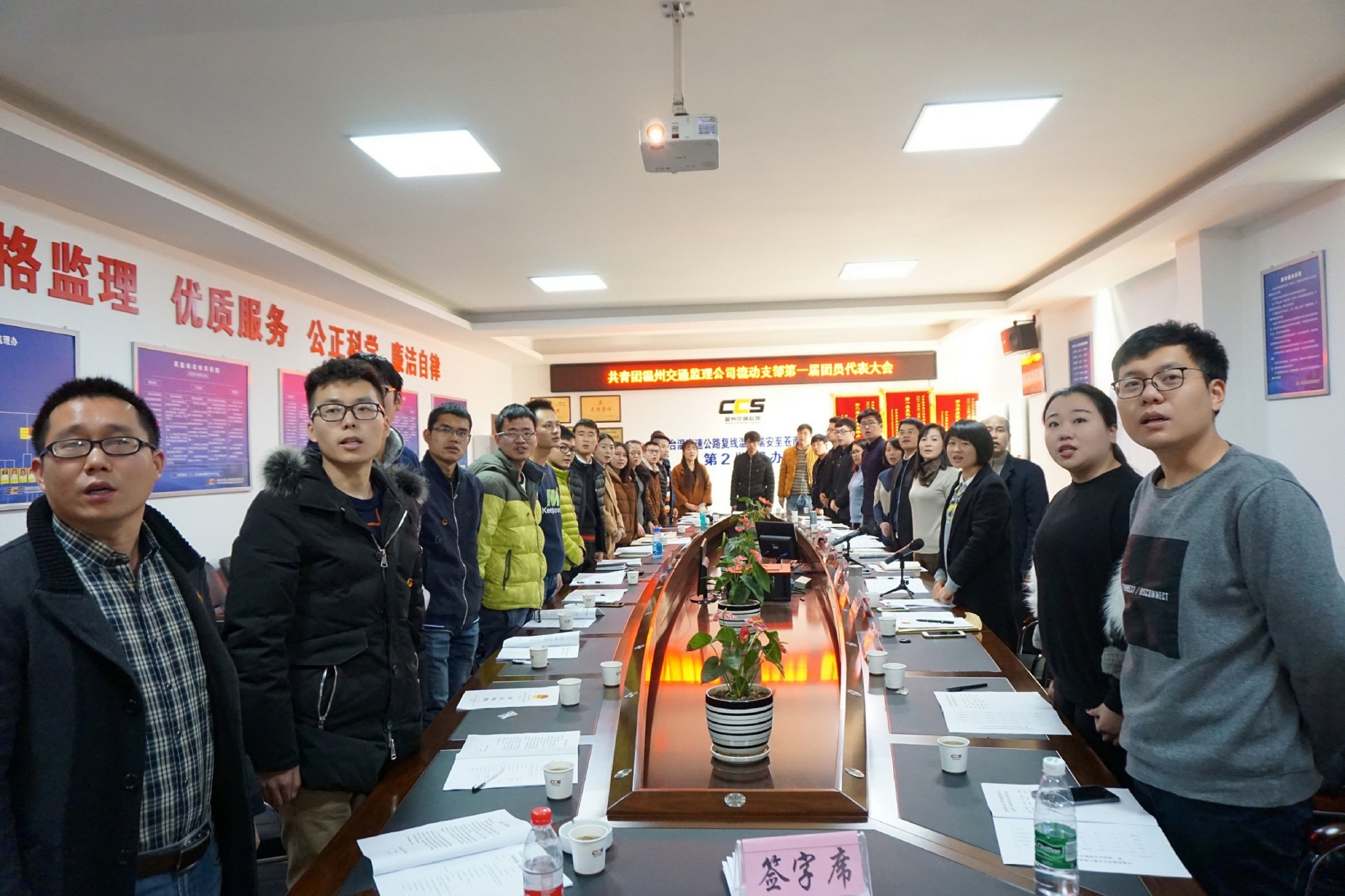 12月22日下午,共青团温州市交通工程咨询监理有限公司流动支部第一届团员代表大会在瑞苍段第二监理办会议室召开。会议由监理公司团总支书记易春燕主持,集团团委书记胡永杰,监理公司党总支副书记沈剑华、组织委员薛颖颖,30多名青年团员代表参加会议。