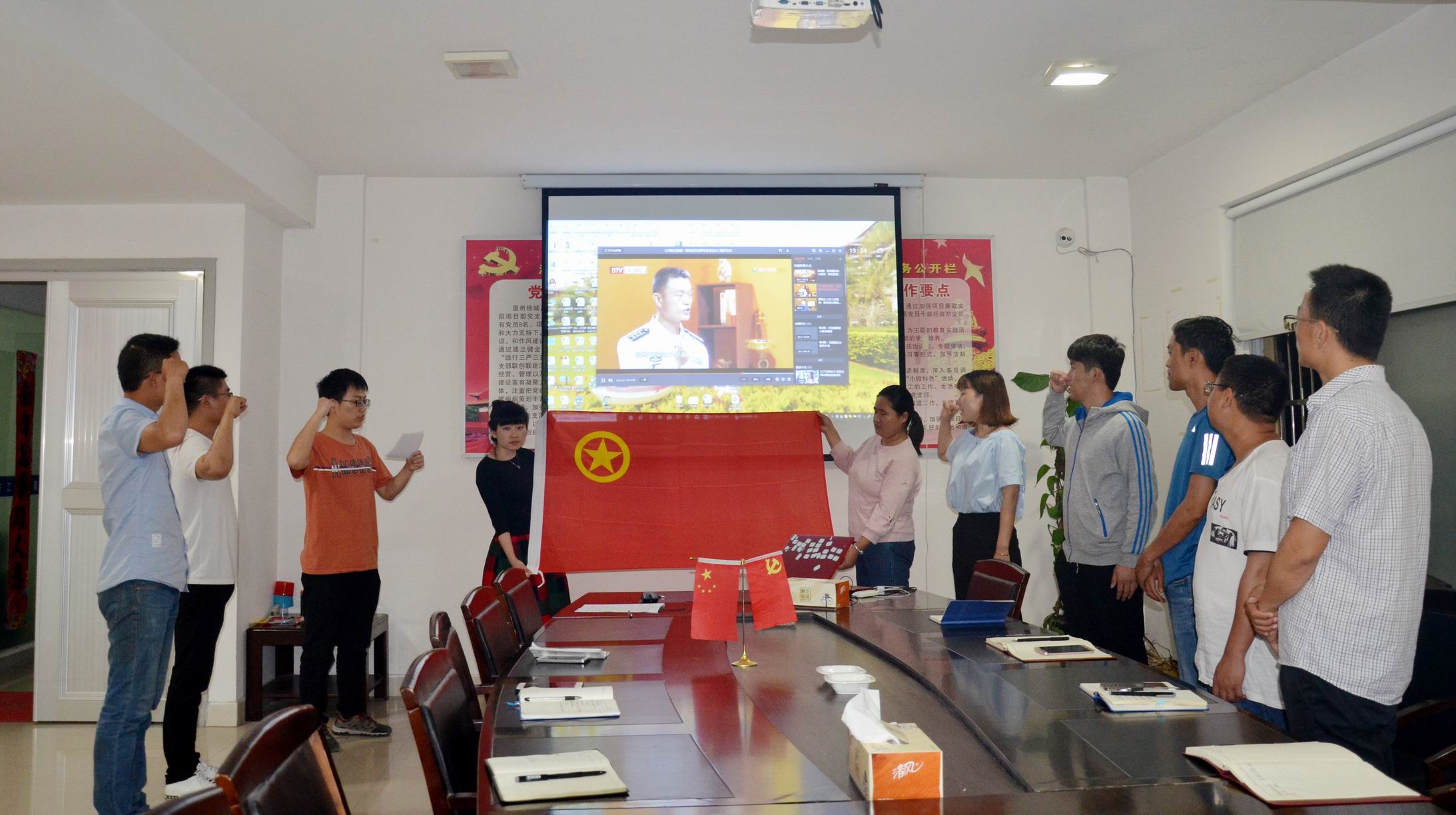 会上,青年职工首先观看了五四运动的视频,回顾五四运动的历史,并进行集体宣誓,重温入团誓词,随后,大家共同观看《也门撤侨》《航母发展》以及《交通网络》《国之砝码》等纪录片。