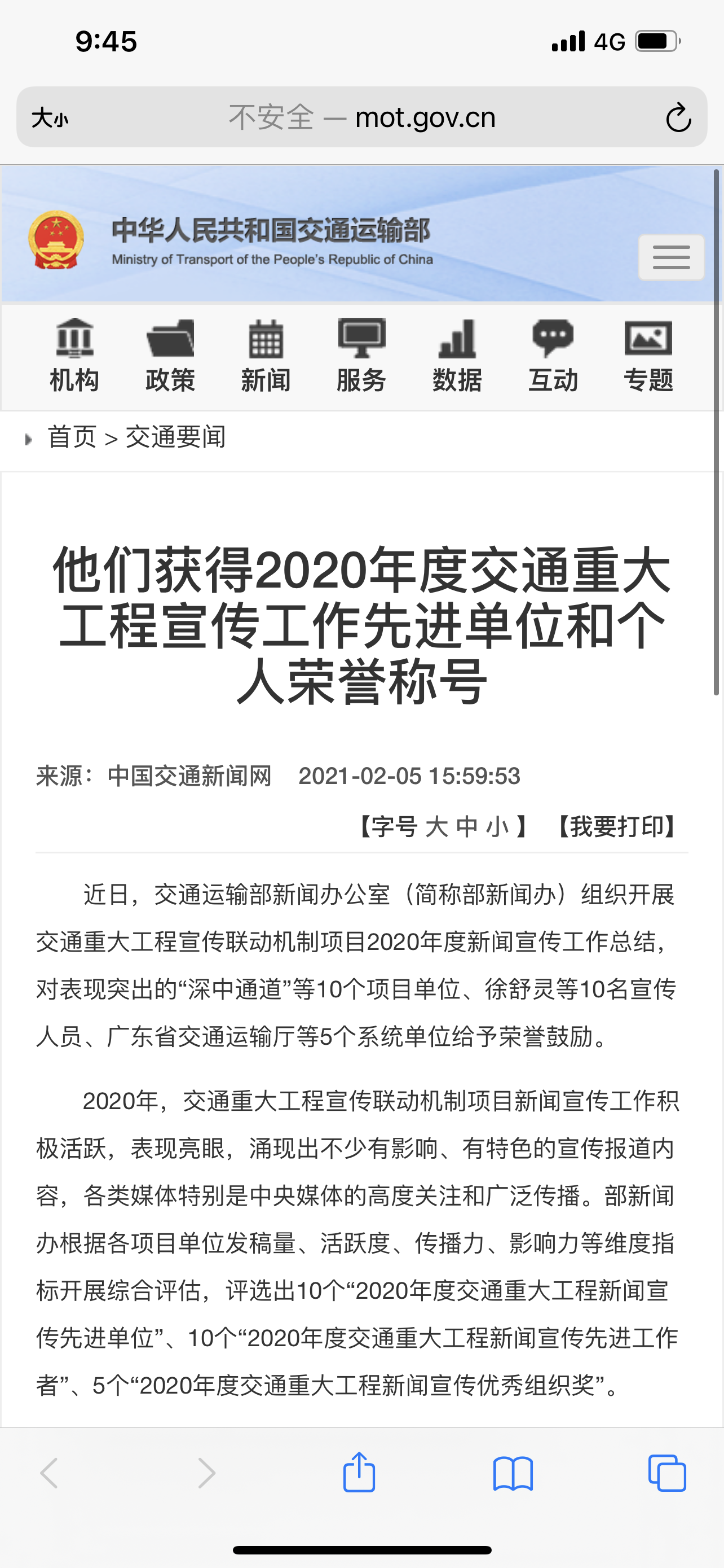 近日,交通运输部新闻办公室组织开展交通重大工程宣传联动机制项目2020年度新闻宣传工作总结,对表现突出的项目单位给予荣誉鼓励,温州瓯江北口大桥荣获“2020年度交通重大工程新闻宣传先进单位”,为浙江省唯一获奖单位。