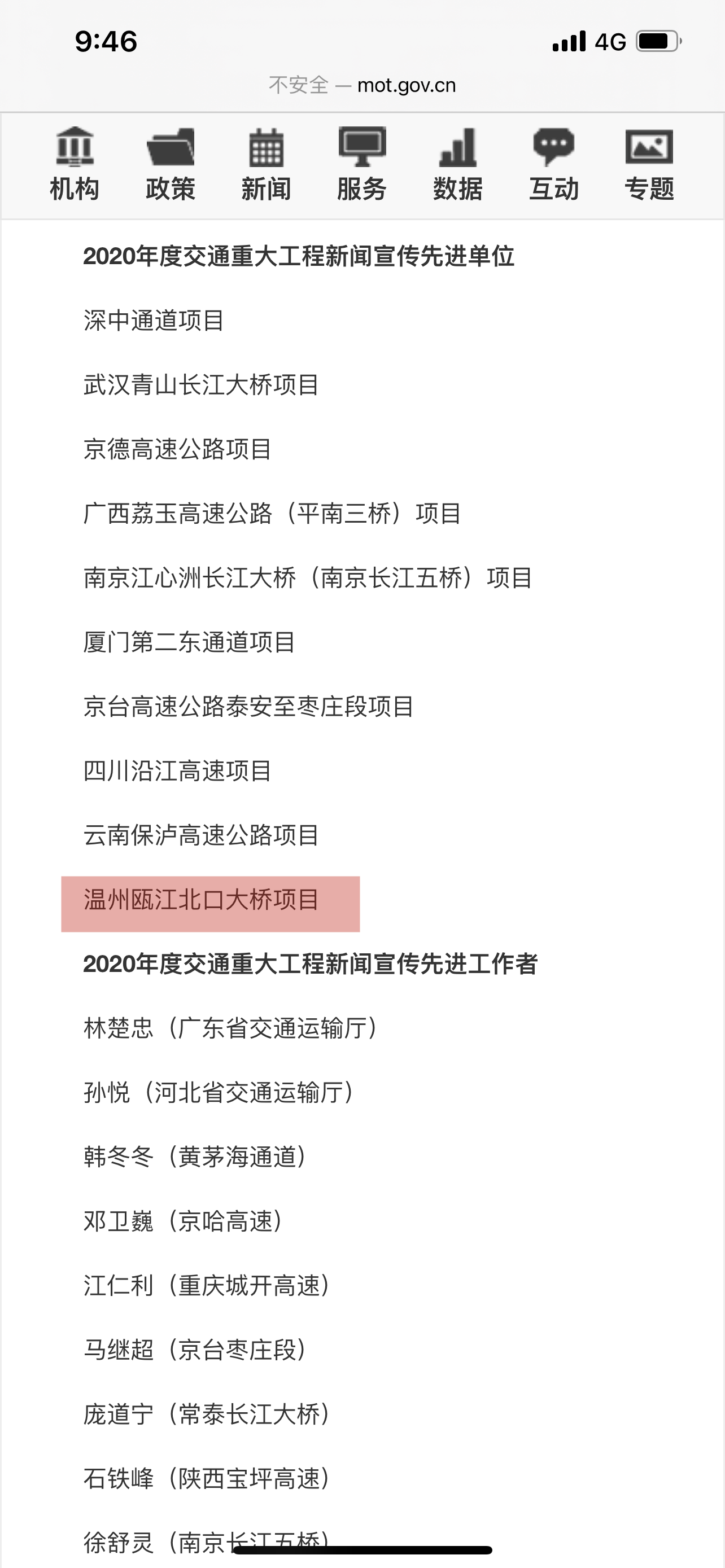 温州瓯江北口大桥项目获交通部新闻宣传先进单位