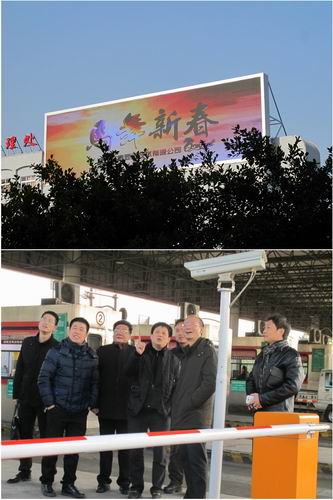 1月21日上午,宋白桦副总经理莅临温州大桥管理处检查指导LED亮屏工作。集团经营管理部经理王约飞、土地开发公司董事长钟振欧、温州大桥管理处主任助理戴建敏及施工单位负责人等陪同。