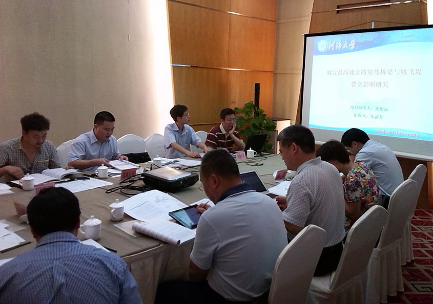 与会专家和代表认真听取了河海大学课题组的详细汇报,进行了深入的审查讨论。经专家组的质询和评议,形成专家组意见,会议赞同跨越瓯飞堤主桥方案,同时对交叉段海堤宜采用塑料排水板、超载预压方案及桥梁桩基变形与堤坝沉降位移观测提出了具体要求及意见。