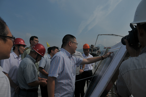 陈市长一行深入瓯江过江通道施工现场,认真听取了市交投集团总经理秦肖和通道公司常务副总经理朱清福关于项目工程概况、工程进度、工程质量、安全等情况的汇报,沿线仔细查看了各节点的施工情况并详细询问了下一步工作安排及建设中面临的实际问题。一言一行都显现出心系温州交通建设。陈市长充分肯定了工程建设工作所取得的成绩。他指出,瓯江过江通道是温州市的形象工程,尽管项目在建设过程中受诸多客观因素的制约,但各单位、各部门要通力合作,强化目标,狠抓落实,保证工期。同时一再叮嘱现场施工人员要抓好工程质量,确保安全生产。保证完成市委市政府下达今年全线通车的重大任务,为瓯江两岸经济发展做出应有的贡献。