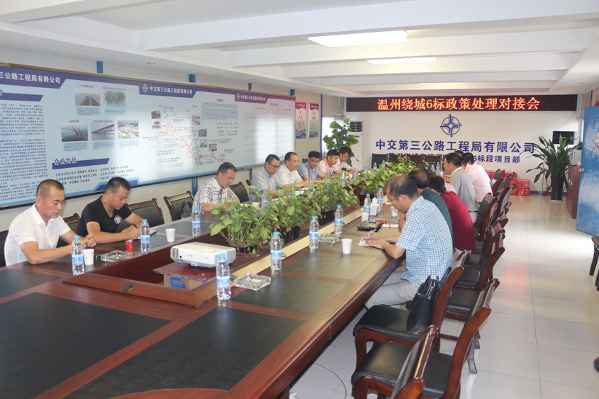 为加快绕西南工程建设用地交付工作,确保工程顺利推进,近日,市交投集团副总经理、绕西南公司总经理管连众赴瑞安对接政策处理工作,在第6标段项目部召开座谈会。瑞安指挥部常务副指挥刘进国、陶山镇常务副镇长赵建成及相关人员参加。