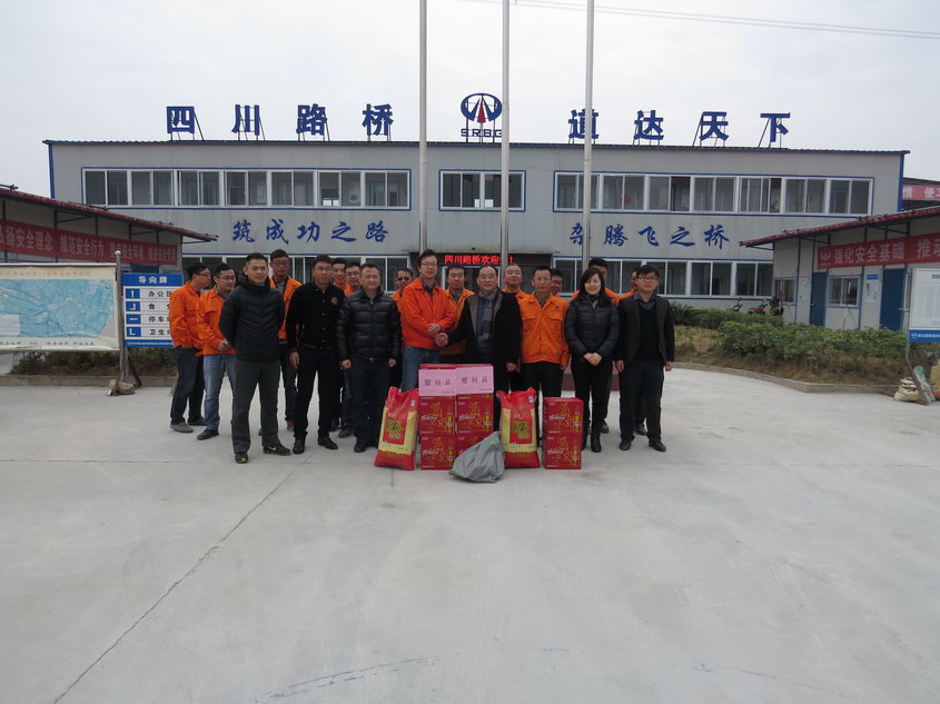2月11日,集团副总经理、绕西南公司总经理管连众携领导班子成员慰问公司现场管理处、各监理和施工单位,为依旧奋战在工程建设一线的人员送去了大米、猪肉等年货,向他们致以诚挚的问候和新春祝福。