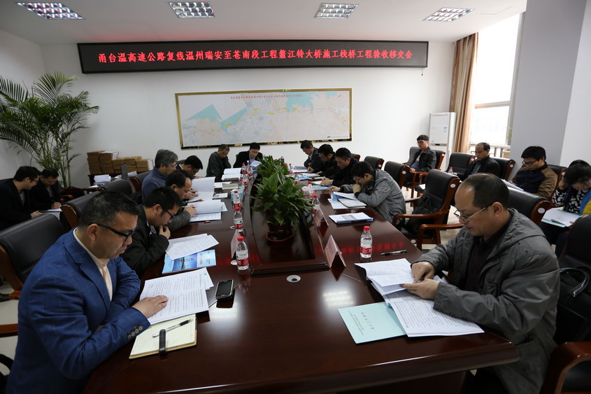 2015年4月9日,沈海公司在平苍段管理处组织召开了甬台温高速公路复线温州瑞安至苍南段工程鳌江特大桥施工栈桥工程验收移交会议。市交通运输局、市交投集团、平阳县高速公路工程建设指挥部、省交通规划设计研究院、市交通工程咨询监理有限公司及中交第一公路工程局有限公司等单位的代表参加了会议,并成立了验收小组。