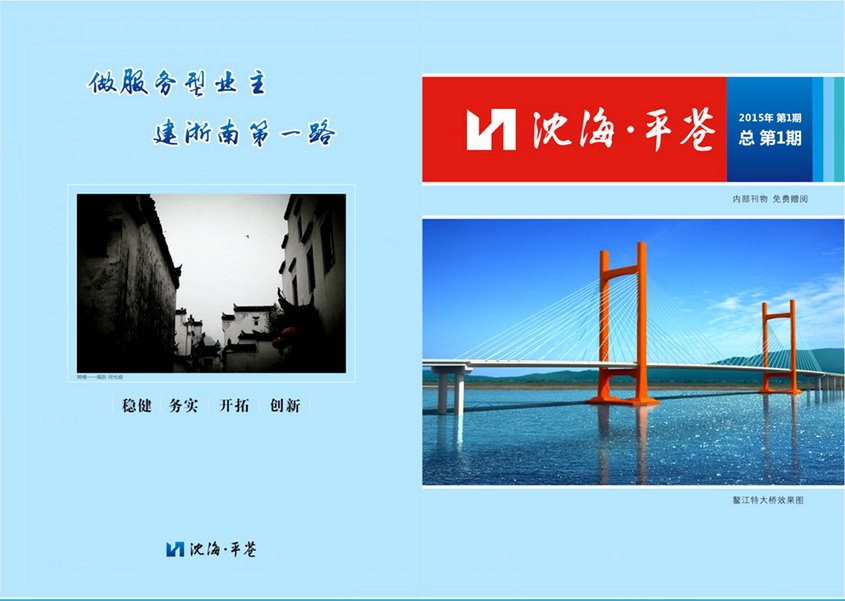 新常态下,创新已成为不变的主题。《沈海•平苍》工程杂志的应运而生,是沈海公司加强企业文化建设、创新宣传媒介、展示工程形象的有效载体,她将围绕平苍段工程各阶段的建设进度和员工的精神需求,发出建设好声音,传递建设正能量,弘扬建设主旋律,提供有价值的参考信息及有意义的精神食粮,成为传播温州交投、沈海公司品牌形象、展示员工风采的一座新的桥梁纽带。