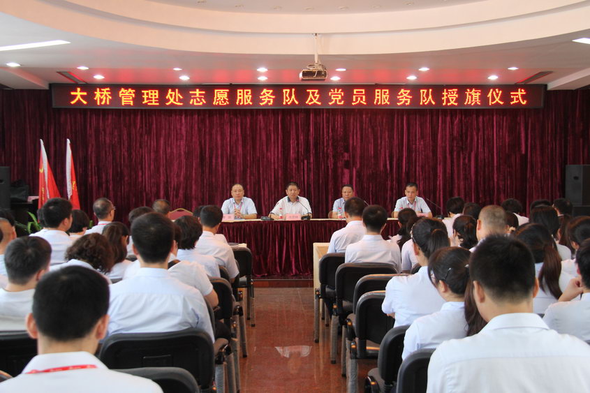 为着力落实党建特色品牌创建工作,弘扬“奉献、友爱、互助、进步”的志愿者精神,大桥管理处决定于今年成立处志愿服务队及党员服务队。经过前期有序筹备,9月11日,大桥管理处举行了处志愿服务队及党员服务队授旗仪式。集团党委副书记徐贤林、大桥管理处主任戴新荣、副主任叶克钧及全体志愿者共200余人出席仪式,仪式由大桥管理处副主任李诩主持。