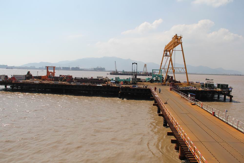 在项目部的精心组织和大力投入下,项目一开工便直接进入高速建设的轨道:自5月份临建工程破土动工以来,项目部仅用两个月时间完成了项目办公、住宿、文体等一体化施工;自6月7日启动首根钢护筒打设,在短短5个月内完成包括大桥南、北岸主墩平台在内的10处共16000平方米施工平台搭设,打设永久性钢护筒超万吨,完成桥梁桩基42根,其中主墩130米的超长桩基20根,已累计完成产值约1.6亿元。